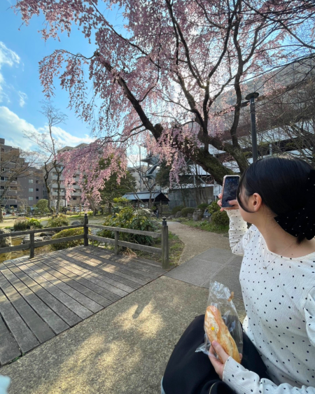 会場となる中島丁公園の桜は既に咲き始めており、学生たちは打ち合わせ前にしっかりお花見も楽しみました。