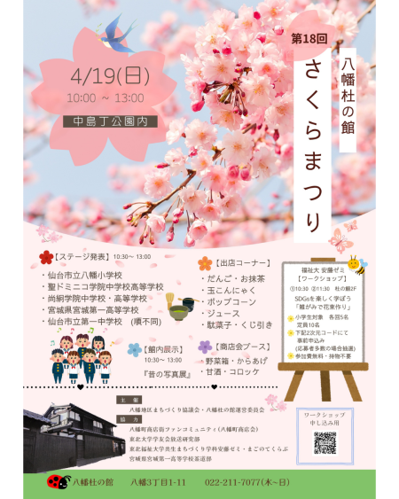 さくらまつりは、八幡地区の大切な交流の場として、4月19日(日)に開催されます。お近くにお越しの際はぜひお立ち寄りください!