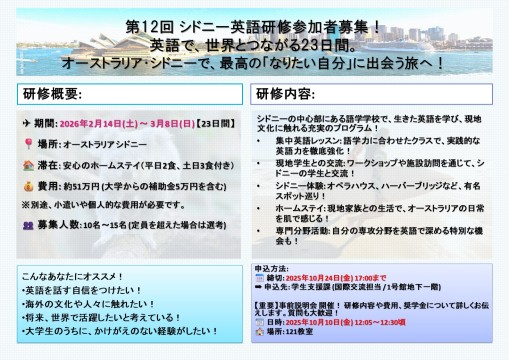 事前説明会:9/26(金)12:00~@122教室 申 込 締 切:10/3(金)17:00