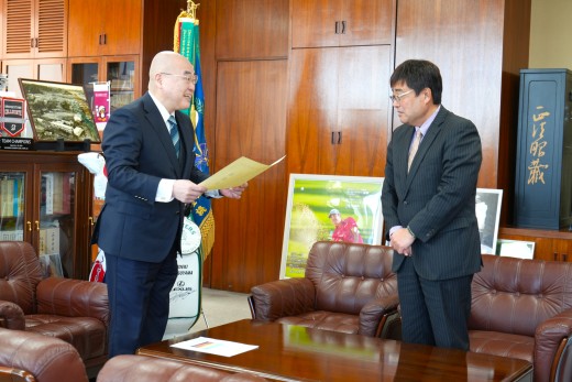 本学の地域創生推進センター生涯学習ボランティア支援課が、1月23日(金)に仙台北警察署より感謝状を贈呈されました。これを受け、1月26日(月)に千葉公慈学長への報告を行いました。