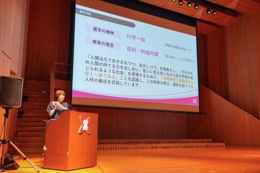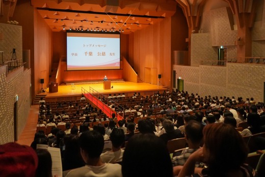 開会のトップメッセージでは、千葉学長よりご来場の皆さんへ学園創立150周年のお話と併せて「新キャンパス構想」について、動画を交えて紹介いたしました。