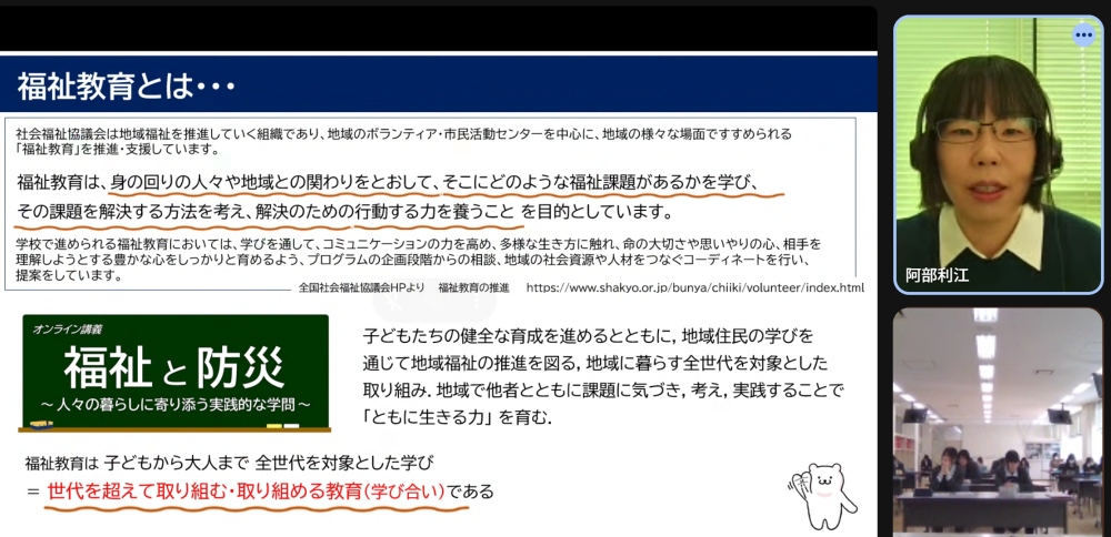 - 講義テーマ: 「福祉と防災 ~人々の暮らしに寄り添う実践的な学問~」