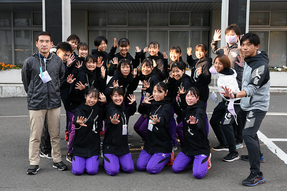 1区を任されたのは昨年に続き金澤選手。先頭集団に食らいつき、昨年の16位を大きく上回る8位と好走。2区の小松選手は区間6位の快走で、5位に引き上げ流れをつくります。その後、順位を落としますが、4区の武内選手が区間6位の走りをみせるなど、一人ひとりが力を発揮。2015年、2019年の過去最高14位を大きく塗り替える9位でフィニッシュ、本学過去最高タイムも1分30秒更新しました。