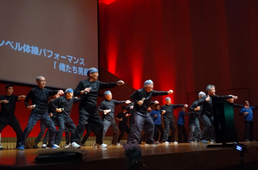 このイベントは、レクリエーション論の授業の一環として行われました。創作群舞 ダイナミック琉球から始まり、3つの講演と実践編での体操を通して、本学の学生だけでなく、OB・OG、小さい子どもや元気塾ネットワーク、NPO法人わくわく元気ネット、東日本大震災被災地支援事業関係者など、シニアの方々が一体となったホールは、いつものホールでのイベントとはまた違った空気感がありました。