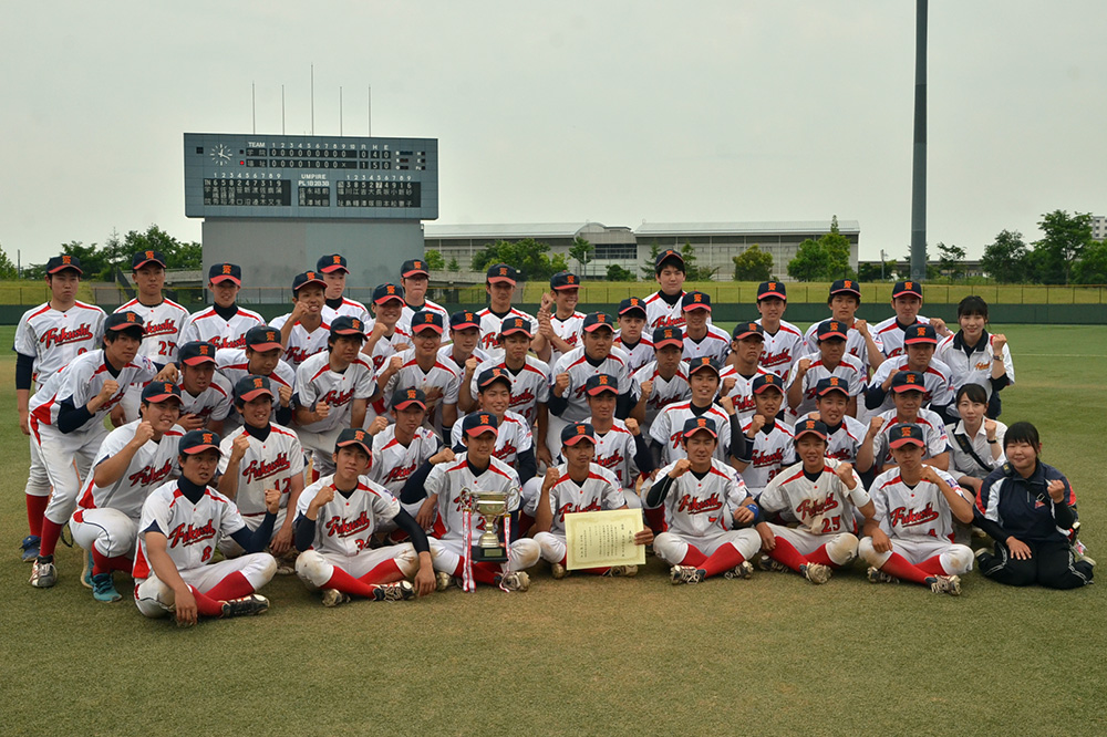 息詰まる投手戦となった決勝戦。五回一、三塁から1番川島直也内野手(3年)が右前に先制適時打を放ち、これが決勝点となりました。エースの新妻涼太投手(4年)は前日の準決勝から連投となりましたが、散発4安打完封。2戦連続完投、計273球の熱投で3年連続の全国大会に導きました。本大会は8月19日、長野県で開幕。6月23日に組み合わせが決定する予定です。