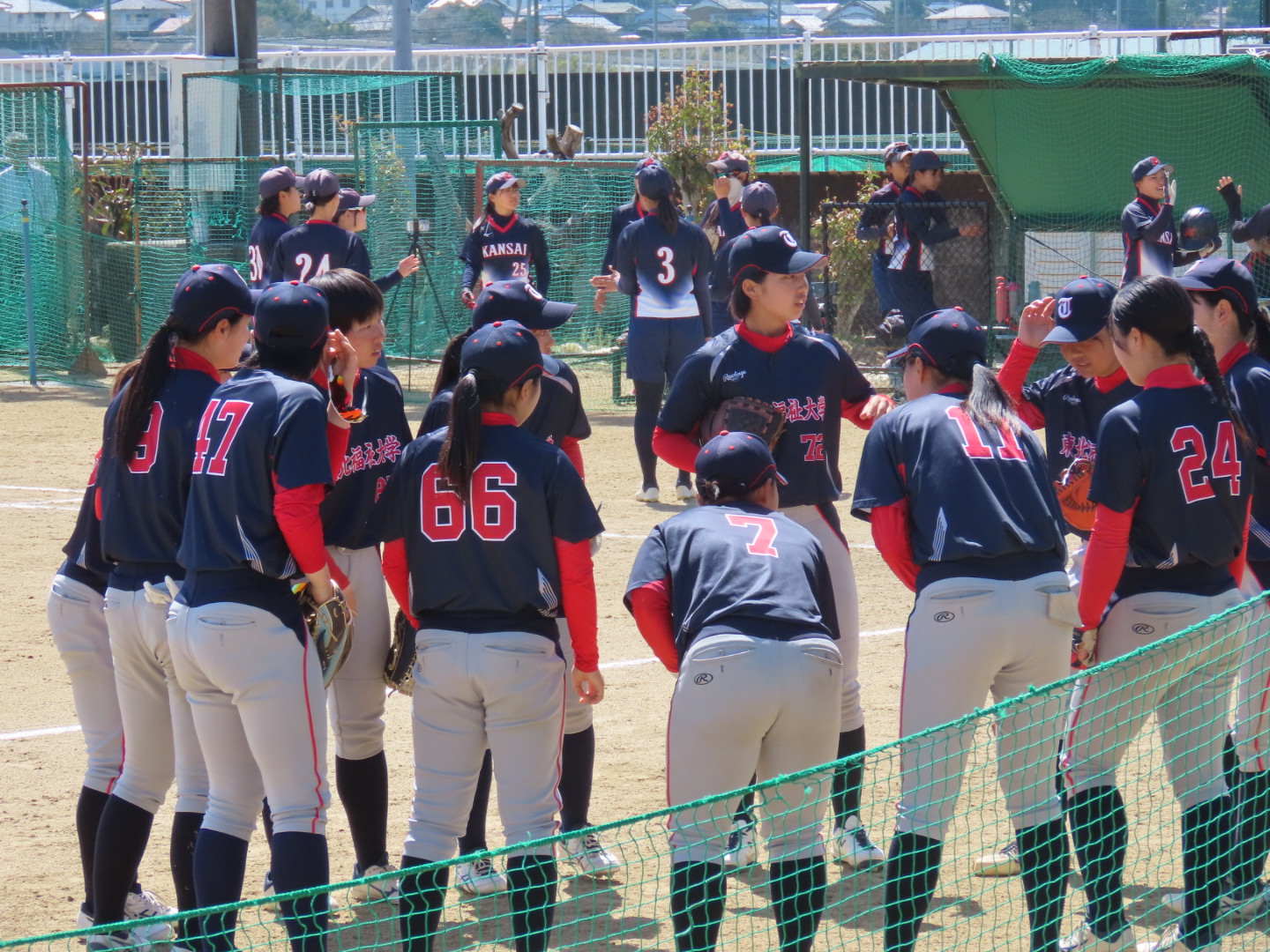 熊野市長杯の最終日は関西大学との対戦でした。4回まで投手戦になりお互い点が入らず、攻撃もランナーを出しますが、点に繋げることができませんでした。4回裏、投手が田中(秋田:新屋)に代わりますが、1アウトから3塁打を打たれ、野手のエラーとデッドボールにより満塁になります。三遊間を抜けるヒットを打たれ、1点を先制されます。投手が光野(千葉:千葉)に代わり、最小失点で抑える好リリーフを見せます。6回裏、投手が桑原(福島:学法石川)に代わり、リズムの良いピッチングを見せます。攻撃は粘りますが、最後まで点を取りきることができず、1-0で負けてしまいました。
