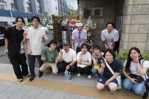 笹鮨さんには、事前の撮影から祭り当日まで、大変お世話になりました。学生制作の飾りをご覧になり、とても喜んでくださったことが学生たちの励みになりました。本当にありがとうございました。