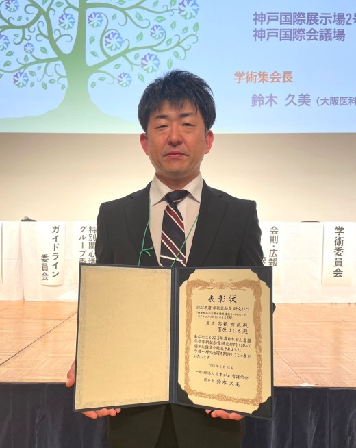 本学保健看護学科の高根 秀成(たかね ひでなり)助教が、令和5年度の日本がん看護学会学術奨励賞を受賞し、2月24日に行われた第38回 日本がん看護学会学術集会における授賞式で表彰されました。