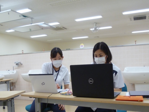 子どもや赤ちゃんとのかかわり方を学ぶための小児看護や母性看護の演習は主に、ここ看護技術実習室Ⅰで実施します。模擬講義は今年度、新型コロナウイルス感染症予防対策のためオンラインでの実施となりました。