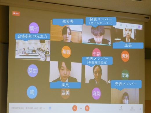 オンライン開催であり、学生はそれぞれの自宅から、学会発表のようにスーツを着用して参加しました。座長、タイムキーパー、発表者、資料掲示などのすべての役割を学生が担い、学生が運営しました。