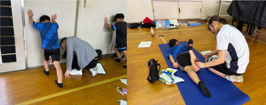 また、9・10月には測定結果のフィードバックとスポーツ外傷・障害予防を目的としたストレッチ指導や動作指導を行いました。