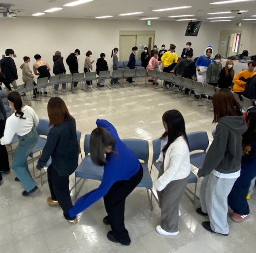 企画担当者からゲームの説明等があったのち、フルーツバスケット、椅子取りゲーム、人狼ゲームと、学生も教員も一緒に楽しみました。いす取りゲームでは、最後は男子学生の戦いになり、応援もみんなで楽しんでいました。ちょっと前に流行った人狼ゲームは、先生方はもちろん初めての経験ですし、他にも未体験の学生もチラホラいましたが、事前に企画担当者が詳細な説明書を作成してくれたおかげで、「心理戦&頭脳戦」を楽しむことが出来ました。