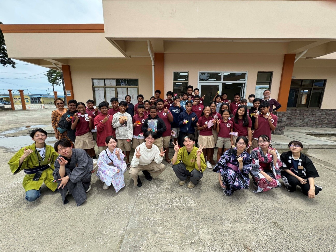 毎年恒例となりました、国際ボランティアサークル「ワールドチルドレン芸術祭」主催のスタディツアーが開催されました。南太平洋のパラオ共和国に8月20日から26日の7日間、7名の学生たちを本学科所属の教授・生田目学文部長が引率し、本学科の桑原真弓教授と教育学科の中林幸子講師が同行しました。芸術祭が作成しているチャリティカレンダーに絵が採用されたサクラさん(5年生)が通う小学校をはじめ3校の子どもたちとの交流、国際協力機構(JICA)やNGOピースウィンズ・ジャパンが行っている現地支援活動を視察、太平洋戦争で激戦地となったペリリュー島の訪問など、充実した研修旅行でした。