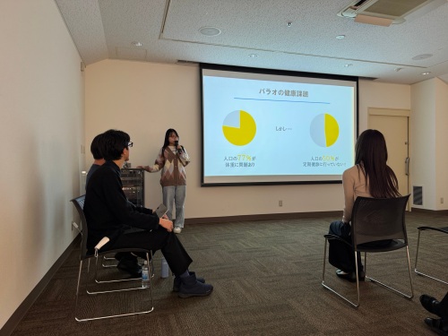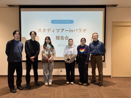 今年8月20日(水)から26日(火)の7日間、本学の国際ボランティア 団体の「ワールドチルドレン芸術祭」が主催したパラオ共和国へのスタディツアー報告会を、本学仙台駅東口キャンパスのセミナー室で開催しました。