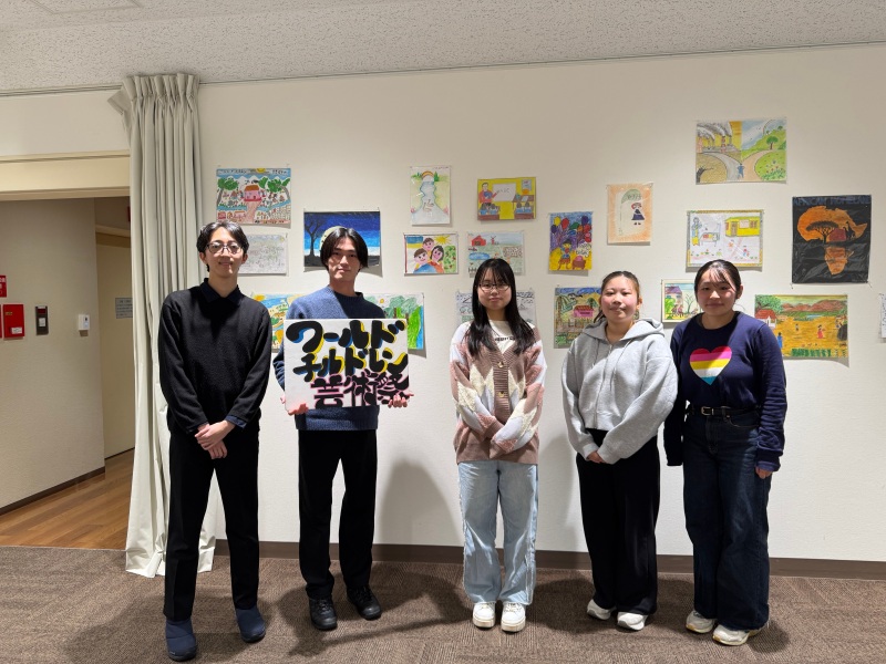 はじめに情報福祉マネジメント学科4年の飯島陽斗さんが同団体の説明を行い、次に教育学科2年の若松あいさんが、小学校を訪問してチャリティカレンダーに掲載された作品を描いたサクラさんら子どもたちとの交流や、国際協力機構(