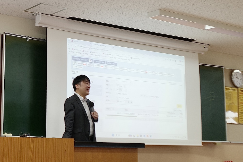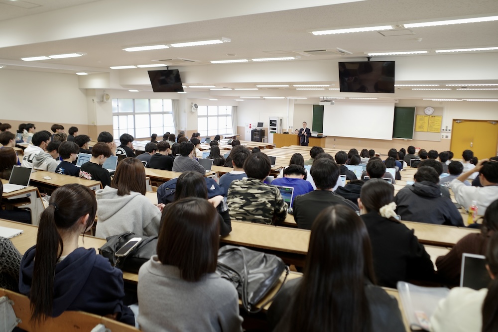 講義の後半は、これからの学びの土台となる履修や単位修得に向けた重要なポイントについて、ガイダンスが行われました。4年間の見通しを立てるための大切なステップです。皆さん、真剣な表情で聞いていました。