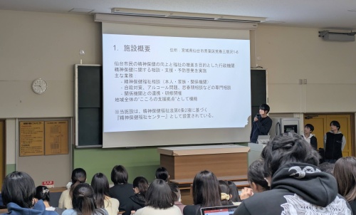 10月29日(水)の4・5限に公認心理師カリキュラムを履修した4年生による「心理実習」の報告会が開催されました。会場では、次年度または再来年度に心理実習を履修する予定の3年生と2年生が、発表を聴きました。発表は9つすべての実習機関をグループごとに担当して行われました。