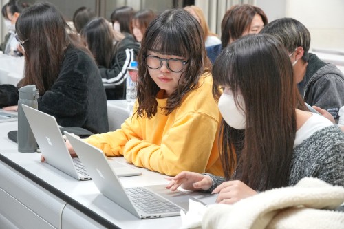 中でも、「『ちいかわ』が好きな人には、どのような特徴があるのか?」というテーマで行われたワークでは、学生たちが仮説を立て、データを検証するプロセスを体験。データの背後にある“人の心理”を読み解く視点を学び、心理学の実践的な魅力を感じる時間となりました。
