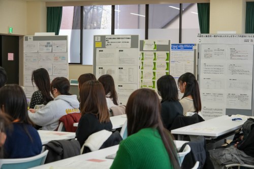 各研究室の成果が集まったポスター発表では、人の心をどのように捉え、理解し、支援やケアにつなげていくかについて、様々な視座から学びを広げ、深めていく様子が伝わってきました。今年は2年生から4年生までが個人研究とグループ研究の成果を報告しました。予定時間を過ぎても各発表者との対話が続くなど、非常に充実した時間となりました。