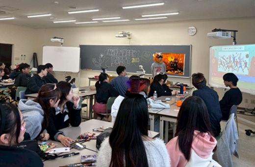 2000年以上前からヨーロッパに存在していた宗教的な祭りが起源とされるHalloween。今や日本でも仮装を楽しむ一大イベントとなっています。伊勢ゼミ・熊谷ゼミの学生は、中国や韓国からの留学生を含む「異文化理解Ⅰ」(熊谷担当)の履修生とともに、10月29日に一足早くハロウィン・パーティーを行いました。各国入り混じったグループ編成でKahoot!を用いた「Halloween Quiz」や「異文化理解クイズ」、バーンガ、英文ジェスチャー伝言ゲームを楽しみました。