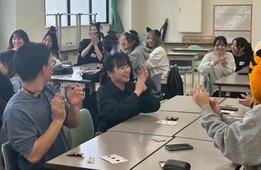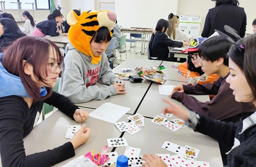 「バーンガ」では、言葉が通じない状況で他者と関わる難しさを実感しました。特に、グループを変えたときに、同じカードゲームのはずなのにルールが少しずつ違っていて混乱しました。相手に確認したくても、言葉を使って説明してはいけないという制約の中で、身ぶりや表情で探り合うことに強い違和感を覚えました。また、必ずしも自分の常識が相手の常識とは限らないという点なども社会に共通していると感じました。(熊谷ゼミ 2年生)