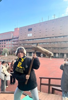 年明けのゼミ活動として、昨年に続き2回目となる『新春もちつき大会』を行いました。準備も2年目となればお手のもの。当日は『よいしょー!』という威勢の良い掛け声が中庭に響き、ゼミ生同士の息もぴったりで、終始笑顔の絶えない時間となりました。つき上がったお餅を囲む頃には、他ゼミの学生や先生方も集まり、賑やかな交流の輪が広がりました。実は、今年は先生が『あんこ』を買い忘れてしまうという小さなハプニングもありましたが(笑)、それもご愛嬌。みんなで想いを込めてつき、あたたかな手で丁寧にちぎり分けられたお餅の味は、何物にも代えがたいほど格別でした。こうした年中行事を通じて、仲間と『丸くなって食べる』喜びを分かち合えたことは、将来、子どもたちに行事の楽しさを伝える上でも大切な財産になったと感じています。また来年も、この温かな輪の中で皆とお餅を味わえる日を楽しみにしています!