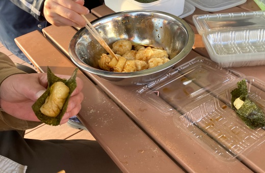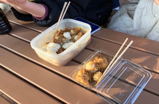 学生たちは慣れない手つきながらも交代で杵を振り下ろし、力を合わせて餅をつき上げました。用意されたのは、定番のきなこもちや香ばしいいそべもち、そして山形県出身の学生からの熱いリクエストによる納豆餅の3種類。バラエティ豊かな味わいを囲み、学年やゼミの垣根を越えた賑やかな交流の輪が広がりました。