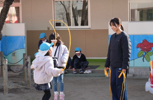 ・子どもと触れ合うことはやっぱり楽しいなと感じた半面、今の自分には足りないところがたくさんあるなと感じました。目の前でけんかを始めてしまったり、「クレーン車描いてー!」と言われ、難しいお題に対して困惑してしまったりし、一番良い対応ができなかったことが悔しかったです。鬼ごっこで鬼を決める際に鬼になりたくない子が鬼になってしまい泣き始めそうになったところ「お姉さんが鬼やるよー10..9..8..7..」とうまく切り替えることができたところはよかったなと思います。また、たくさんの子どもが「一緒に遊ぼ—!」と言ってくれてうれしかったです。しかし、一時に大勢の子どもがきてくれたとき、一人一人の相手をすることが難しくなってしまった時がありました。どう対応したらいいかと先生に質問したところ、遊びたい気持ちを大切にしながら、順番待ち、時間制、同じ遊びをしている子で一緒に遊んであげるようにすると良いと教えていただきました。この先実習等で同じような状況になったとき、この学びをいかしていきたいです。今回参加してみて、自分にはまだできないと思うところがたくさんありました。2年生になる前のこのタイミングで子どもたちと触れ合うことはとても良い刺激になりました。この経験を大切にしながらもっと学びを深めていきたいです。(4歳児クラス)