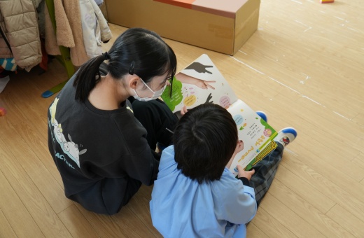 ・一日を通して学んだことが2つあります。1つ目は、年長クラスでは「達成感」を大事にした行動が多いということです。クラスにお休みの子がいない場合はホワイトボードに花丸を書いたり、しっかりお話が聞けている子どもを名前で読んで褒めながら、ほかの子どものお手本になってもらったりするなど、子どもの自己肯定感を高める言葉掛けが多いことが印象的でした。2つ目は、年齢によって友達との関わり方が異なることを学びました。年長クラスでは、友達と一緒に遊ぶ「協同遊び」はできていたもののルールの共有が不十分であり、順番について揉めることが多かったです。一方で年少クラスは、友達意識がまだなく、おもちゃの取り合いで揉めていました。友達と意見がぶつかったときは、すぐに介入せず見守ることで子ども同士の「話し合いの力」「解決力」が身につくことを学ぶことができました。先生方の対応や子どもの年齢ごとの発達の違いを体感することができてとても貴重な体験になりました。(5歳児クラス)