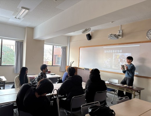 今年で3回目を迎えるマレーシア研修の事前研修は、英語科コースのシュミット教授と熊谷准教授の指導の下で行われました。この事前研修では、現地への理解を深めつつ安全に渡航することを目的として実施されます。学生たちはマレーシアの歴史、言語、習慣などの文化面の学習や、留学をする際に気を付けるべき点、英会話の練習、昨年度の参加者からの体験などを聞き、これから参加する3週間の留学に備えました。