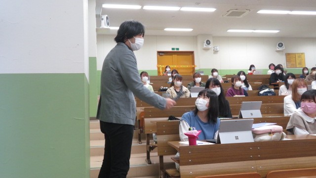 5月27日(木)5限に行われた保育実習指導Ⅰでは、「保育実技研究Ⅰ 保育実技オリエンテーション①」と題しまして、青木則一先生より講義をしていただきました。