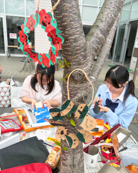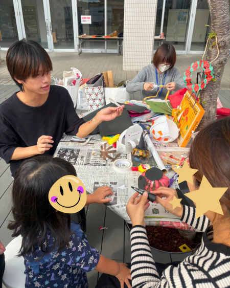 安藤ゼミでは、雑がみでハロウィングッズを工作しながらSDGsについて考えるワークショップを担当。地域のお子さんと一緒に、思いっきり工作を楽しみました!宮城第一高校美術部、漫画研究会の皆さんはフェイスペイントの体験会を実施。学生たちもフェイスペイントを体験させていただき、高校生の皆さんとも交流しながら、とても楽しいイベントになりました。