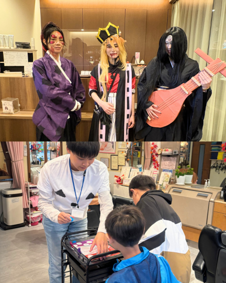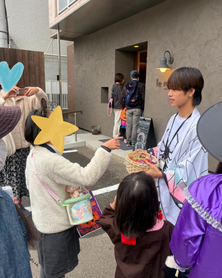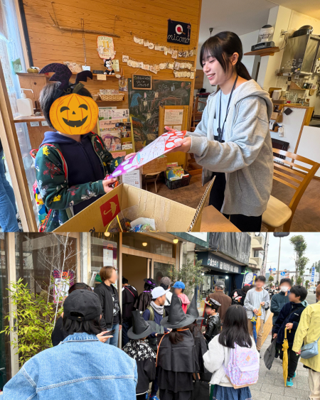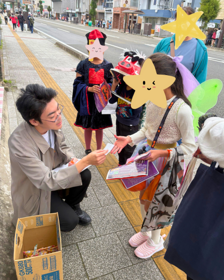 10月25日、八幡町商店街で「はちまんSDGsハロウィン2025」が開催されました。仮装した子どもたちが店の前に列を作り、「トリック オア トリート!」の元気な合言葉が商店街に響き渡りました。今年はお店をまわってお菓子をもらいながら、スタンプを10個集めて中島丁公園へ!大抽選会も行われました。今年度のハロウィンは、八幡町商店街ファンコミュニティ(八幡町商店会)、中島丁町内会・子供会、宮城第一高校美術部・漫画研究会、共生まちづくり学科安藤ゼミが連携し、プレイベントや打ち合わせを重ねて実施されました。