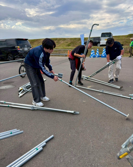 前日準備として、開場設営や景品準備・協賛品、お礼などのラッピングなどの準備作業に携わりました。現地のまちづくり協議会やNPO法人等、関係機関の方々と交流を交えながらの貴重な機会をいただきました。
