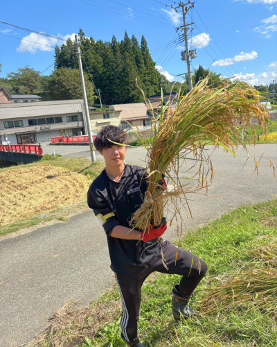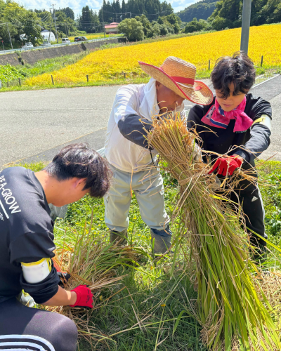 耕作放棄地活用フィールドワーク(岩手県奥州市北股地区、稲刈り・精米編)