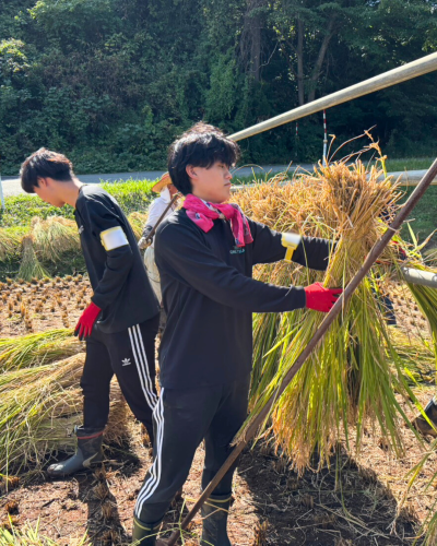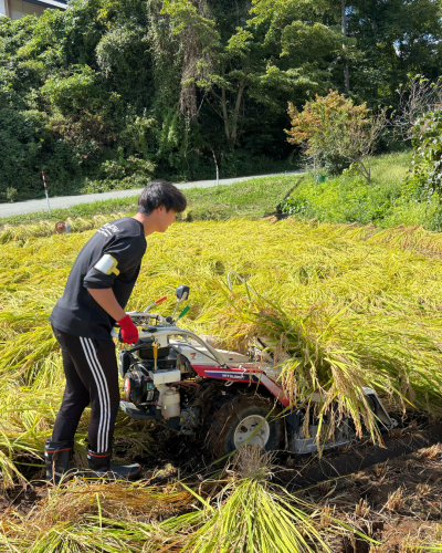 9月23日、奥州市北股地区にある田んぼの稲刈りに、庄司ゼミの学生2名が参加してきました。