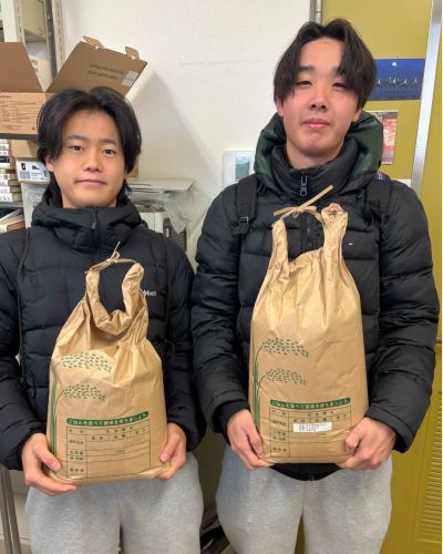 お日様の光を浴びて干されたお米が北股から届いたのは11月上旬のこと。精米したてのお米は、まだぬかのにおいがして、ホカホカです。ゼミ生みんなで分け、北股の新米を楽しみました。来年は田植えから関わりたいなあと夢が膨らむ庄司ゼミでした。