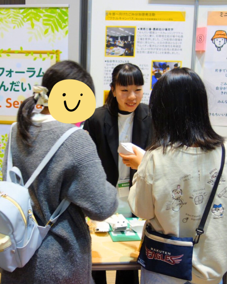 3月14日、産業福祉マネジメント学科の科目「起業フィールドワークⅢ」を履修した学生が、仙台国際センターで開催された「仙台防災未来フォーラム2026」に参加し、環境フォーラムエリアで出展ブースの運営を行いました。