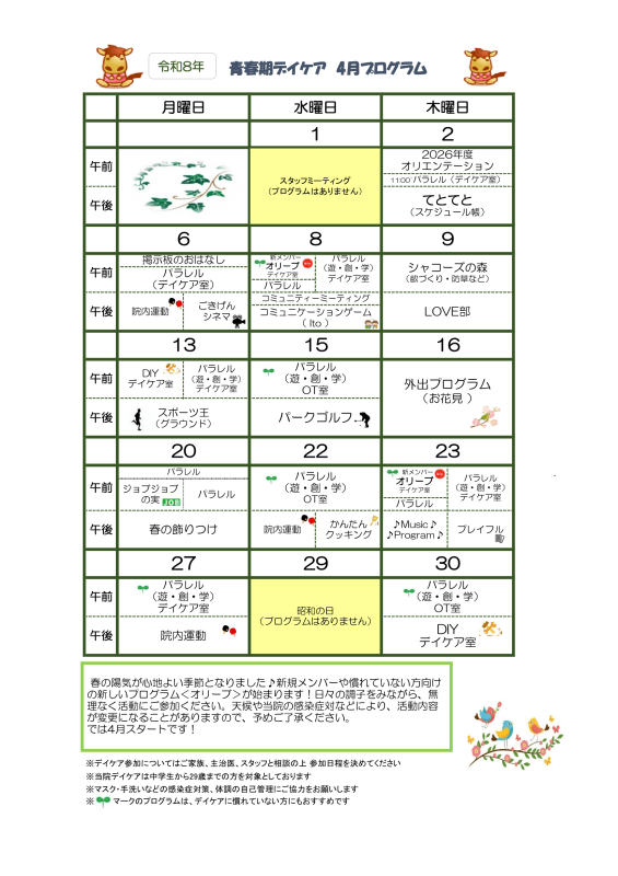 デイケアプログラム更新のお知らせ