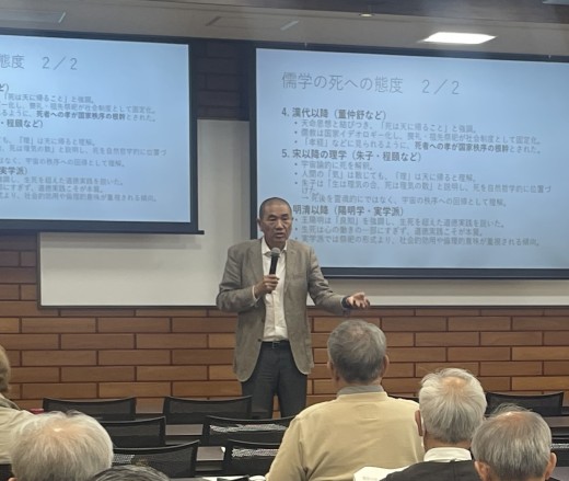 本学教授で仏教学が専門の斉藤仙邦(さいとうひさくに)教授は、古代哲学に限らず様々な宗教と死、鎌倉仏教について、3回にわたりお話されました。