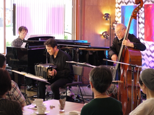 今回のライブはピアノとボーカル、そして普段目にすることの少ないコントラバスとバンドネオン。
