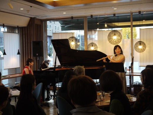 神林 清美さん(Fl.)、菊池 由梨さん(Fl.)、門脇 麻美さん(Pf.)、松原 由佳さん(Pf.)、阿部 憲之さん(Dr.)、齋藤 弘介さん(Ba.) によるクリスマスデュオコンサート。