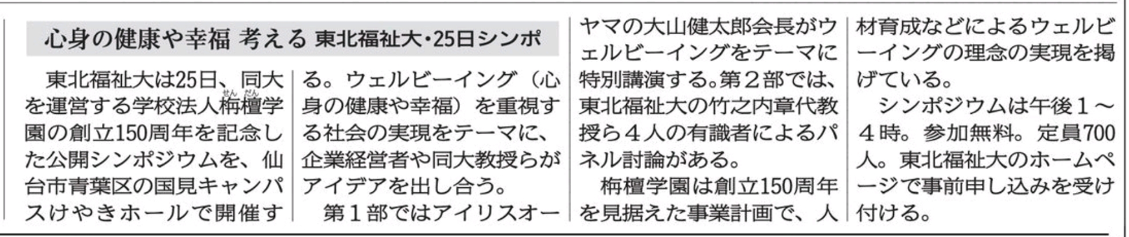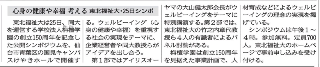 【新聞掲載情報】心身の健康や幸福 考える 東北福祉大・25日シンポ