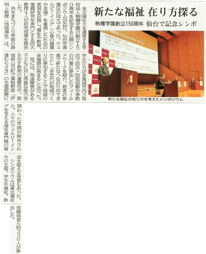 10月25日(土)、本学の国見キャンパスけやきホールで、学園創立150周年を記念して全4学部が連携した公開シンポジウムを開催しました。一般市民や行政、福祉関係、学生など約330人にご参加をいただきました。