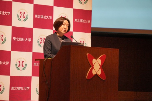 千葉公慈学長は、開会の挨拶で「本学が目指すのは、従来の福祉の概念を超えた『Well-being社会の実現』です。新たな福祉の時代の扉を開き、共生社会を創造する原動力となれるよう邁進したい」と述べ、さらに2026年度の新キャンパス構想についても触れ、これからも『福祉の新時代、はじまる。』をキャッチフレーズに、人と地域・社会をつなぐ大学として、また、ウェルビーイング社会の実現に向けて挑戦を続ける大学として、チャレンジしたい」と挨拶しました。