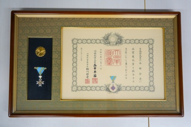 令和7年秋の叙勲受章者は、政府から昨年の10月11日付(11月3日発令)で発表され、同月26日(水)に東京都港区虎ノ門のニッショーホールで伝達式が行われました。その日の午後に皇居で天皇陛下に拝謁されました。