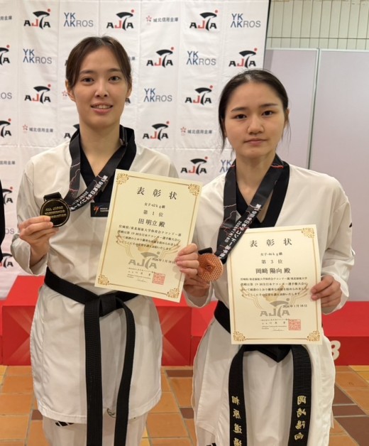 1月18日(日)、第19回全日本テコンドー選手権大会が豊橋市総合体育館(愛知県豊橋市)で行われ、キョルギ種目の女子-62kg級に出場した田 明立(デン・ミンリ)選手(福祉行政学科1年)が優勝しました。