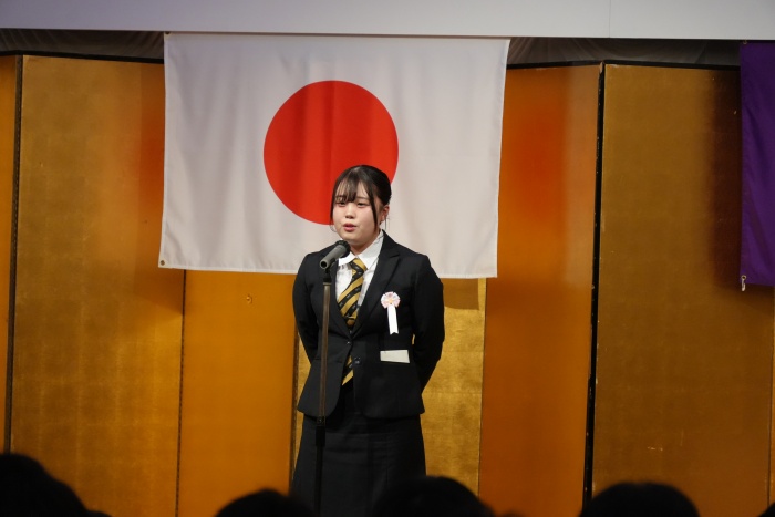 受賞者あいさつでは、昨年6月に「第74回全日本大学野球選手権大会」(東京)で優勝した硬式野球部主務の田中杏璃さん(情報福祉マネジメント学科3年)が、団体の部の受賞者を代表して挨拶しました。同部主務としてチームを支えた田中さんは、「今後も仙台市を拠点とする大学として、スポーツの力で地域に感動を届けるとともに、学生らしく謙虚に努力を重ね、さらに高い目標に挑戦してまいります」と、感謝の言葉と抱負を述べました。