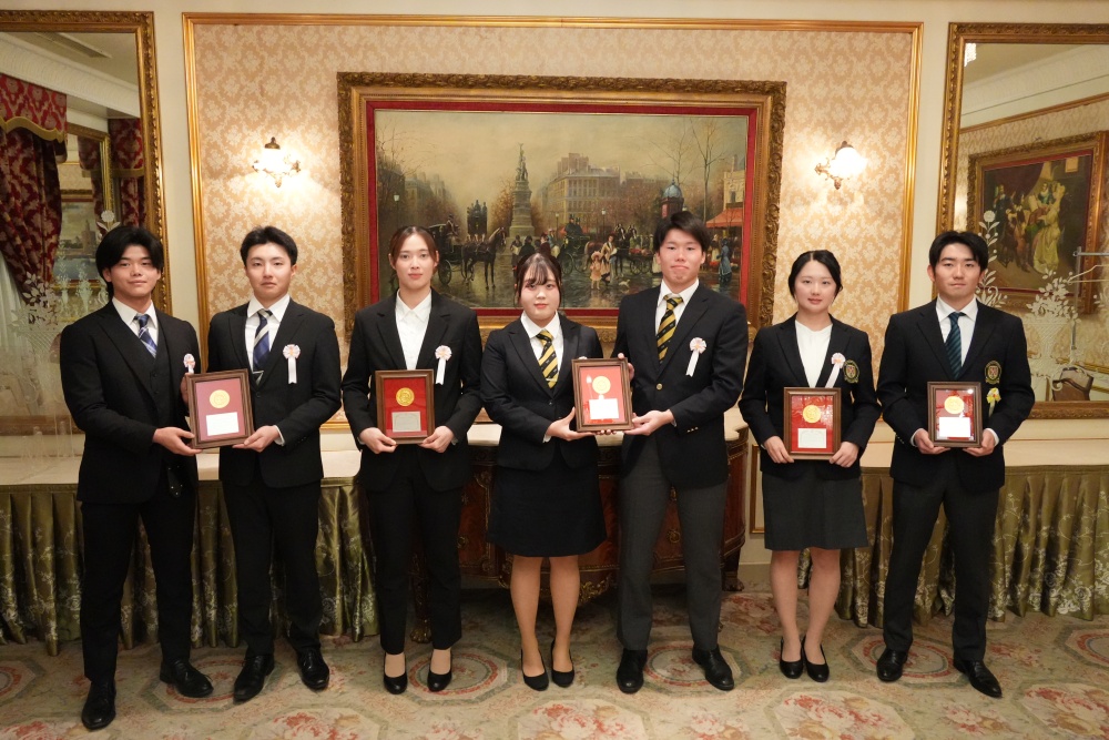 表彰式では、本学の体育会のゴルフ(男子・女子)、硬式野球、軟式野球、テコンドーの各部の活躍に対して、個人・団体の部で表彰されました。