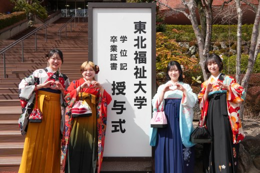 学位記は、大学院の修了生が博士課程2人、修士課程の通学制20人、通信制13人の35人、卒業証書は、社会福祉学科385人、福祉心理学科117人、福祉行政学科103人、産業福祉マネジメント学科99人、情報福祉マネジメント学科94人、教育学科初等教育専攻202人、同中等教育専攻43人、保健看護学科84人、リハビリテーション学科理学療法学専攻45人、同作業療法学専攻37人、医療経営管理学科69人、通信教育部177人の1,455人で、計1,490人が対象となりました。